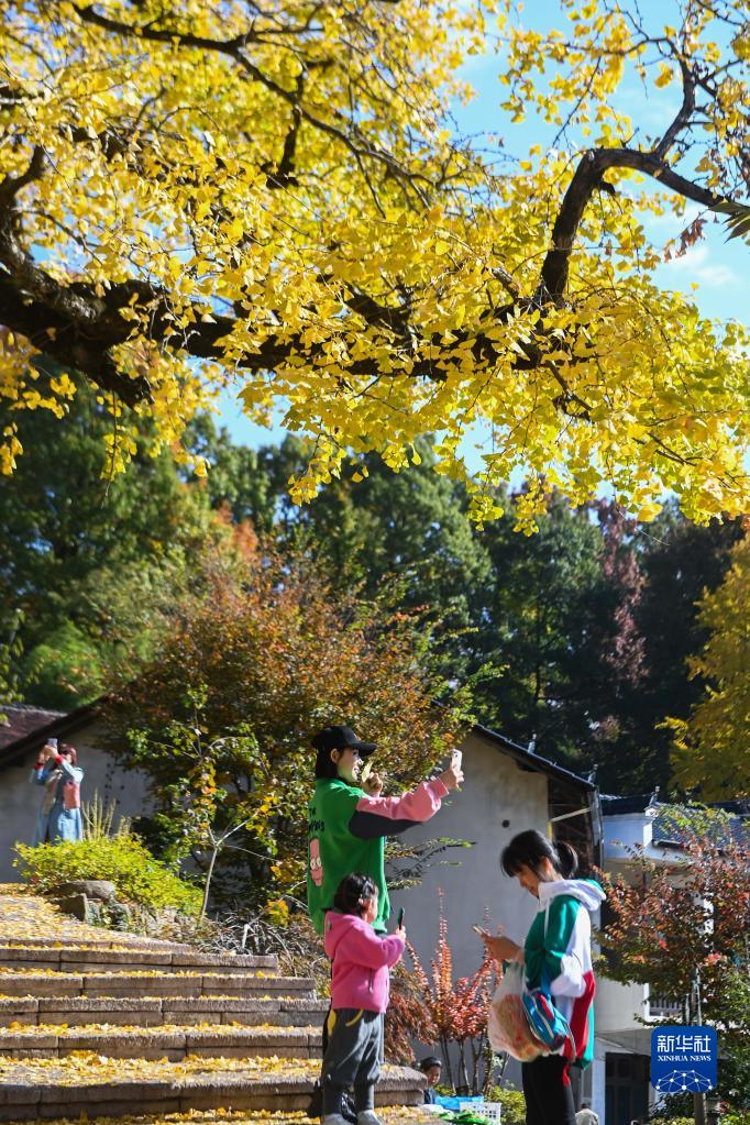 11月5日,游客在指南村的古銀杏樹(shù)下觀賞秋色。