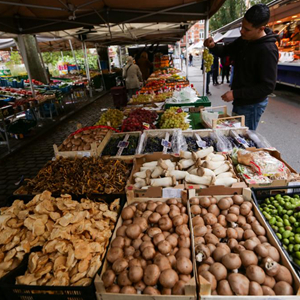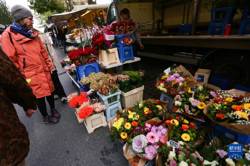 11月4日,顧客在比利時(shí)布魯塞爾一市場(chǎng)選購(gòu)商品。