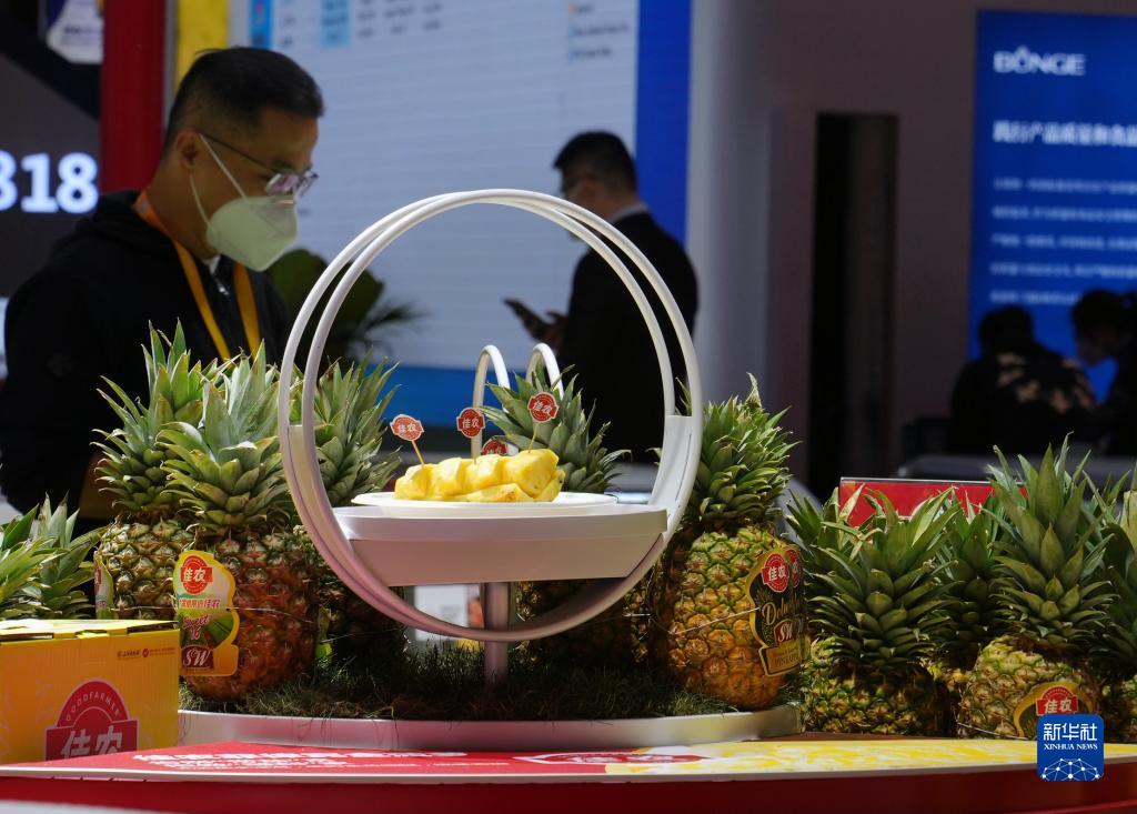 11月5日在第五屆進博會食品及農(nóng)產(chǎn)品展區(qū)拍攝的菲律賓黑鉆鳳梨。