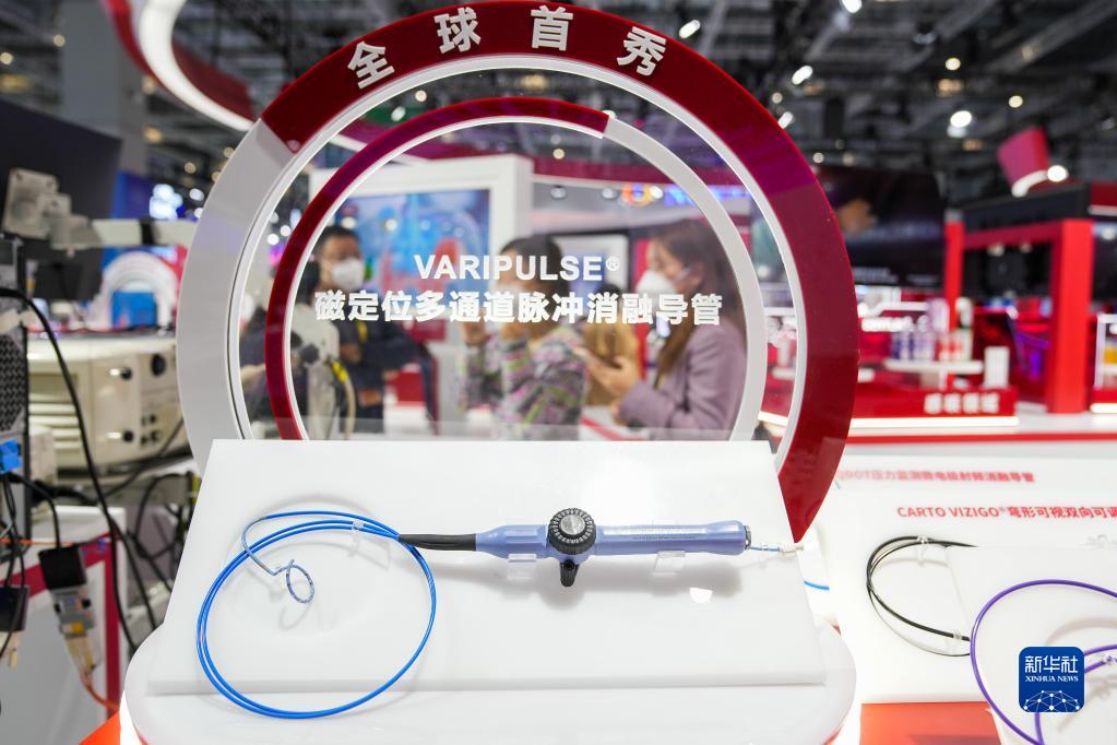 11月5日在第五屆進博會醫療器械及醫藥保健展區拍攝的一款磁定位多通道脈沖消融導管。
