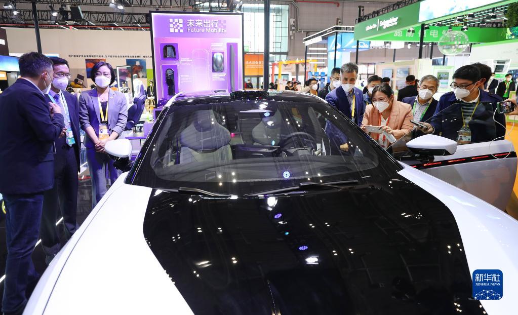 11月5日,參觀者在第五屆進(jìn)博會(huì)技術(shù)裝備展區(qū)的電動(dòng)車前交流。