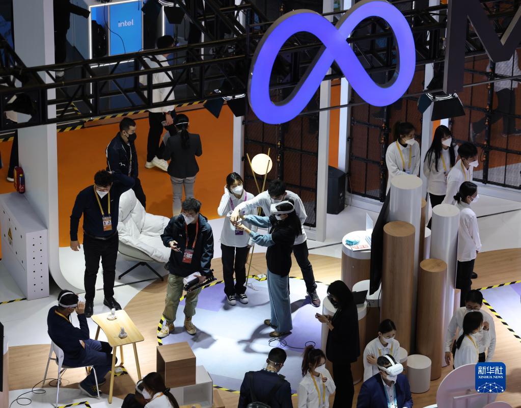 11月5日,參觀者在第五屆進博會技術裝備展區人工智能專區體驗“元宇宙”社區。