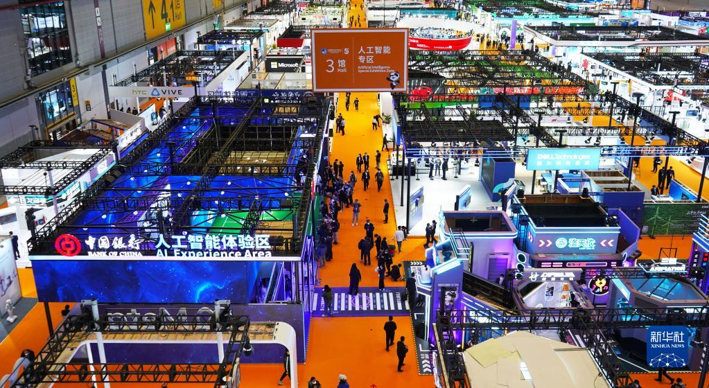 11月5日拍攝的第五屆進博會技術裝備展區內的人工智能專區。