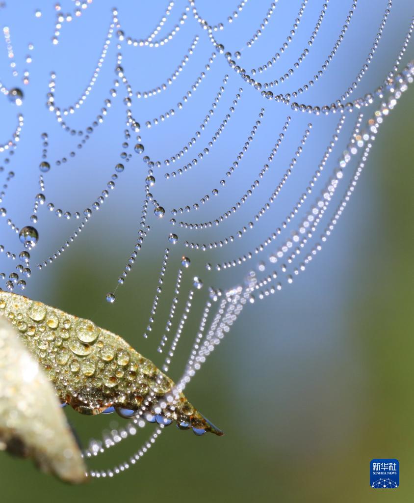 這是10月30日在云南省騰沖市火山地熱國家地質公園拍攝的蛛網。