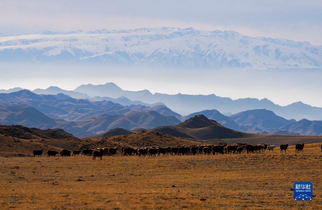新疆裕民縣巴爾魯克山冬季牧場牧歌圖景(11月4日攝)。