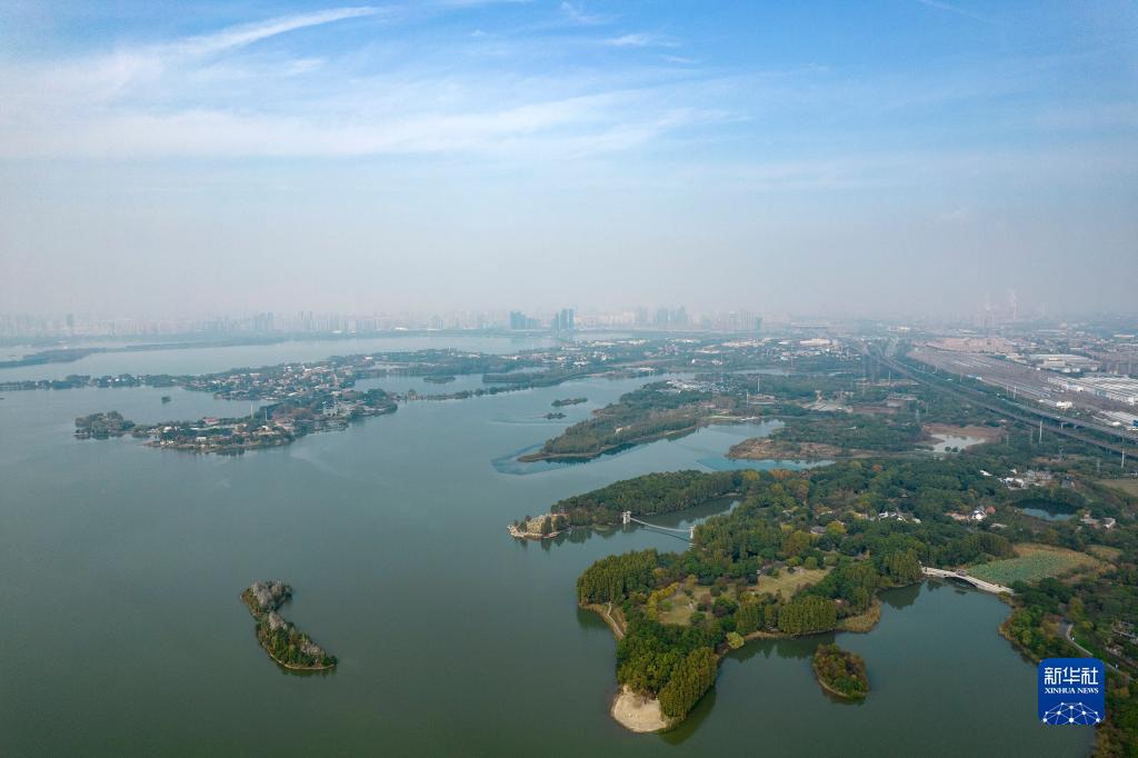 武漢東湖(11月5日攝,無人機照片)。 新華社記者 孫瑞博 攝