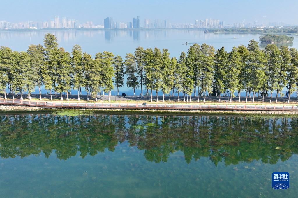 市民在武漢東湖綠道騎行(11月3日攝)。 新華社記者 程敏 攝