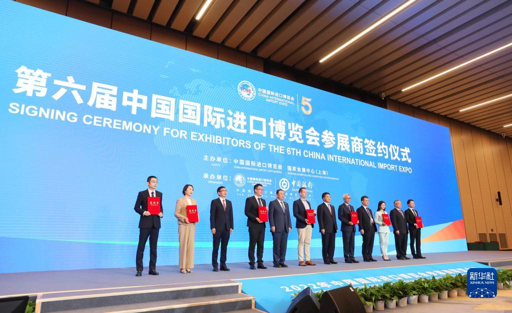 11月6日,2022年中國國際進口博覽會參展商聯盟大會在上海舉行。這是在大會期間進行的第六屆進博會參展商簽約儀式。