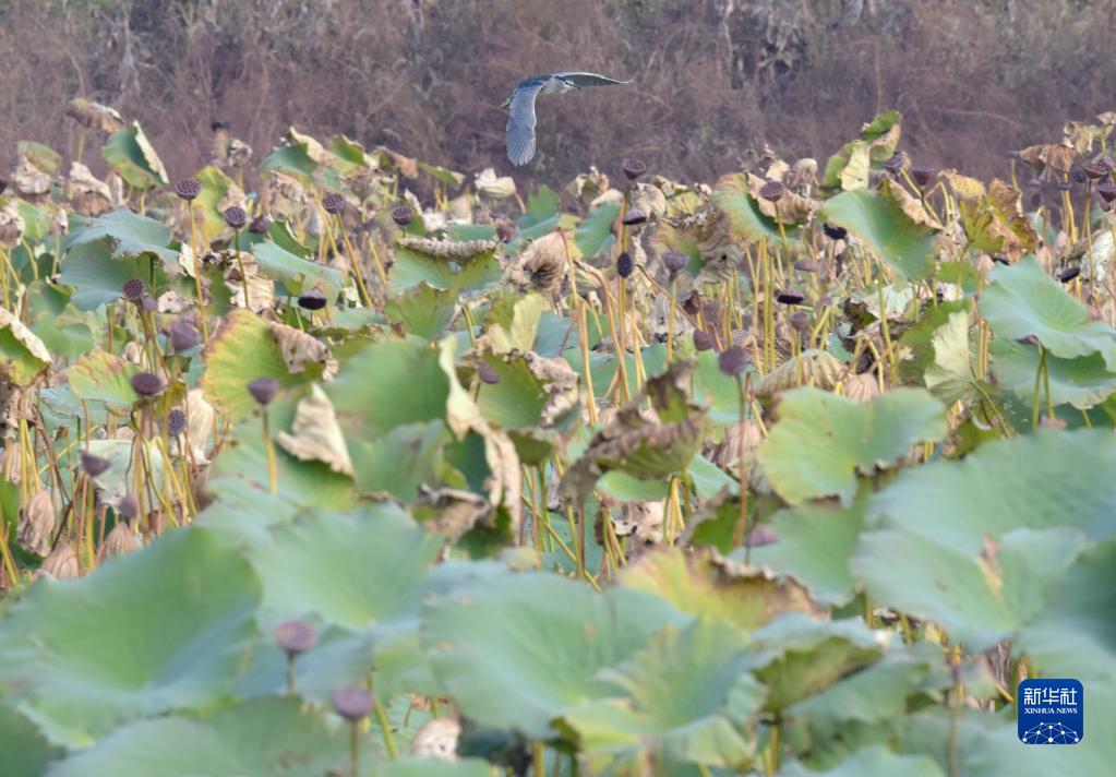 11月5日,一只夜鷺在安徽巢湖半島國(guó)家濕地公園內(nèi)飛翔。