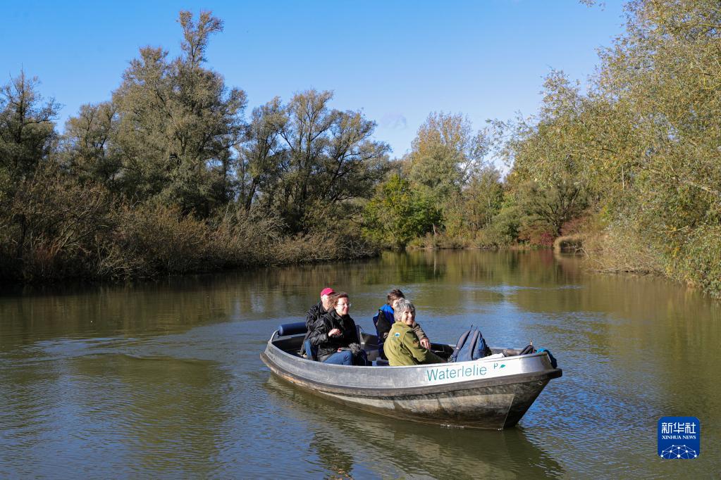 在荷蘭多德雷赫特,人們乘船游覽比斯博斯國家公園風光(11月2日攝)。