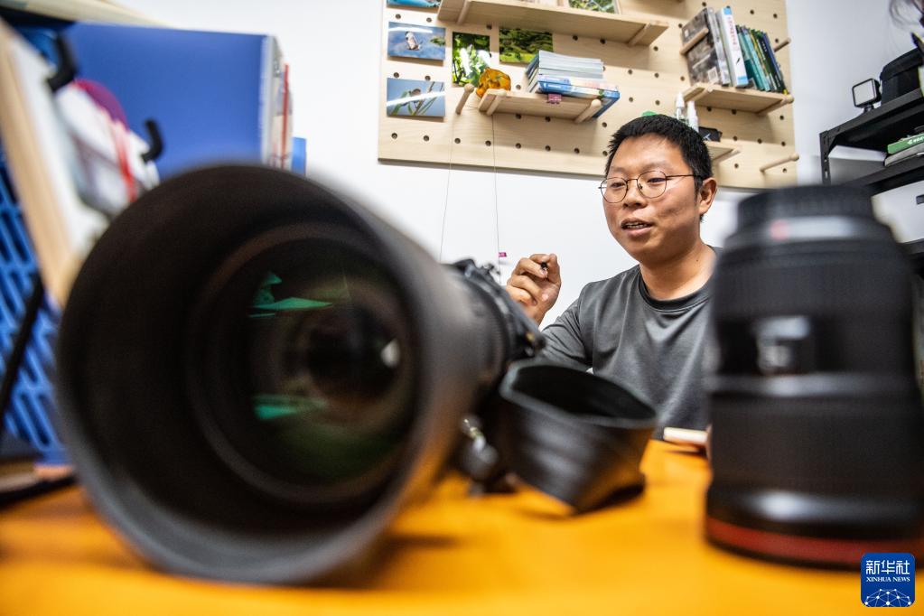 11月4日,高少雄在辦公室里整理拍攝的鳥類圖片。