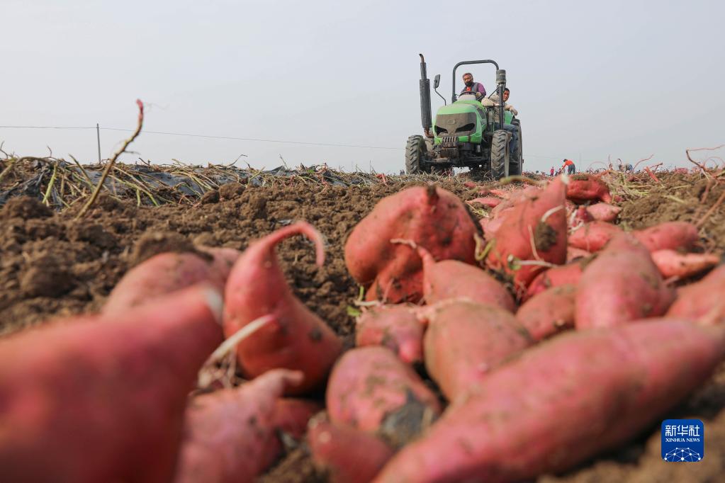 11月7日,河南省平頂山市寶豐縣周莊鎮(zhèn)西黃村農民在收獲紅薯。