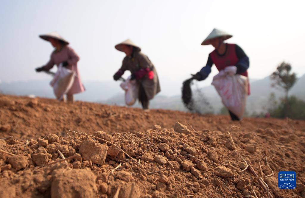 11月7日,貴州省黔東南苗族侗族自治州丹寨縣興仁鎮擺泥村,村民在太子參苗地施肥。