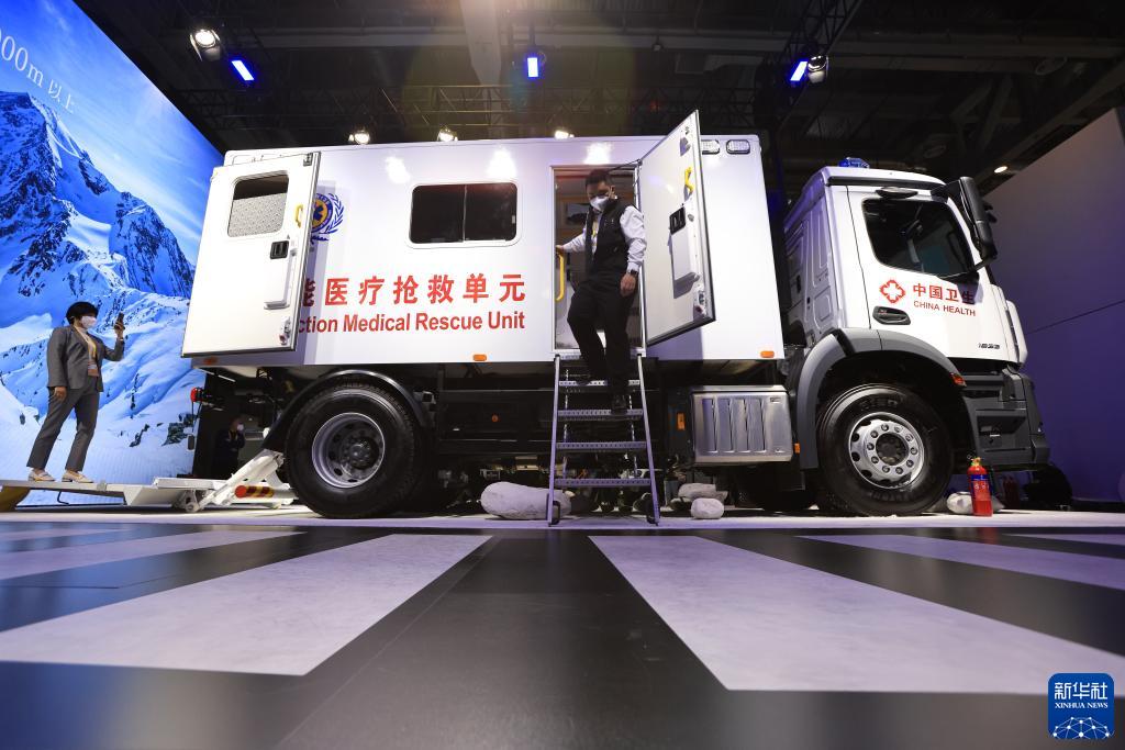 11月6日在第五屆進博會梅賽德斯-奔馳展臺拍攝的多功能醫療搶救單元。