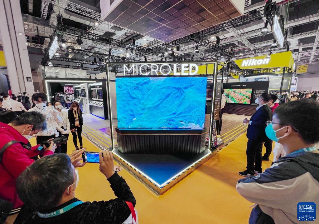 11月6日在第五屆進博會技術(shù)裝備展區(qū)拍攝的三星展臺。