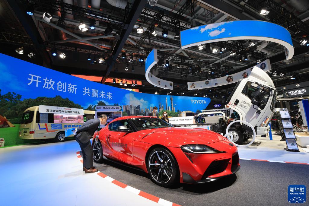 11月6日,參觀者在第五屆進博會豐田展臺觀看一款手動駕駛車。