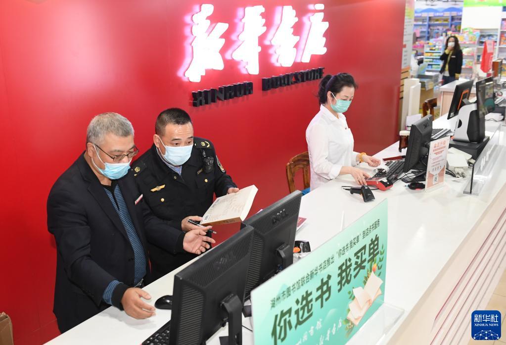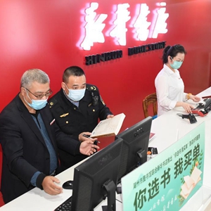 11月7日,在湖州市吳興區(qū)愛山街道一家書店,綜合執(zhí)法隊(duì)工作人員對其進(jìn)貨清單進(jìn)行查驗(yàn)。