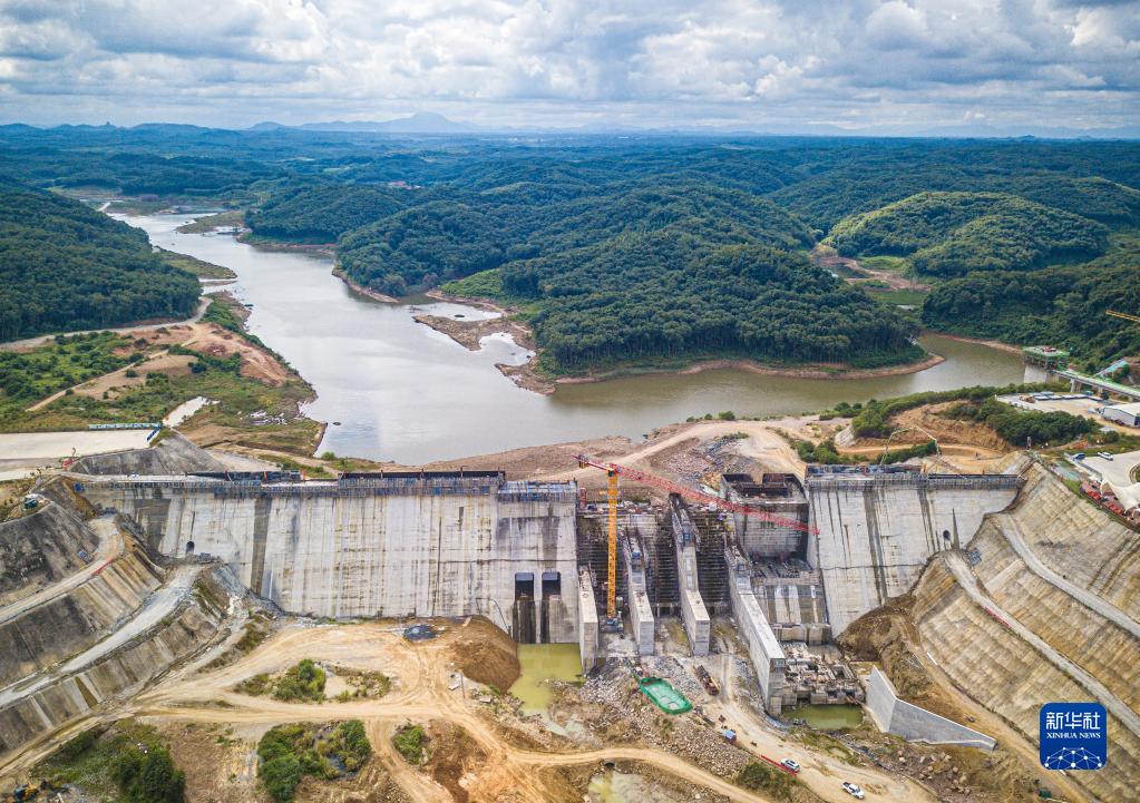 11月7日在海南省儋州市拍攝的天角潭水利樞紐工程主壩(無(wú)人機(jī)照片)。