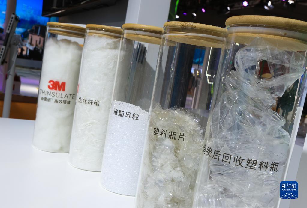 11月7日在第五屆進博會技術裝備展區拍攝的循環再生衣物材料演示。