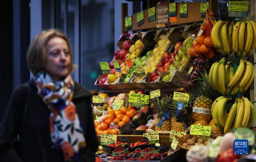 11月7日,一名女子走過法國巴黎路邊一個水果店。