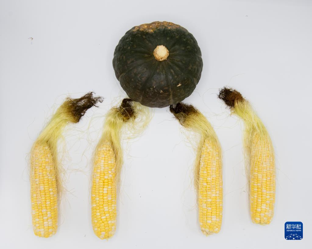 在美國弗吉尼亞州一家連鎖食品超市,10美元能買到4個玉米和1個小南瓜(11月6日攝)。