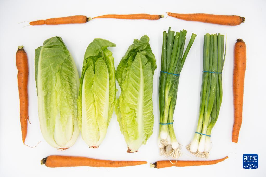 在美國弗吉尼亞州一家連鎖食品超市,10美元能買到三棵羅馬生菜、兩把小蔥和一把胡蘿卜(11月5日攝)。