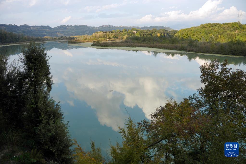 這是11月3日在意大利納扎諾泰韋雷-法爾法自然保護區拍攝的濕地風光。