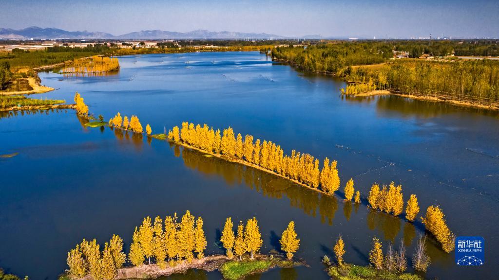 這是山東省濟寧市泗河濕地景色(無人機照片,2020年11月3日攝)。
