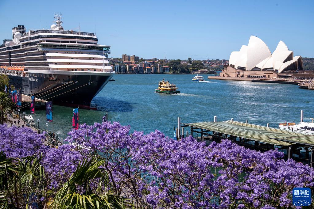 這是11月7日在澳大利亞悉尼歌劇院對岸拍攝的盛開的藍花楹。