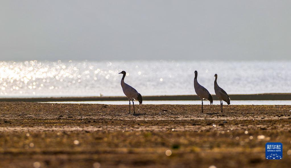 在林周縣虎頭山水庫拍攝的黑頸鶴(11月6日攝)。