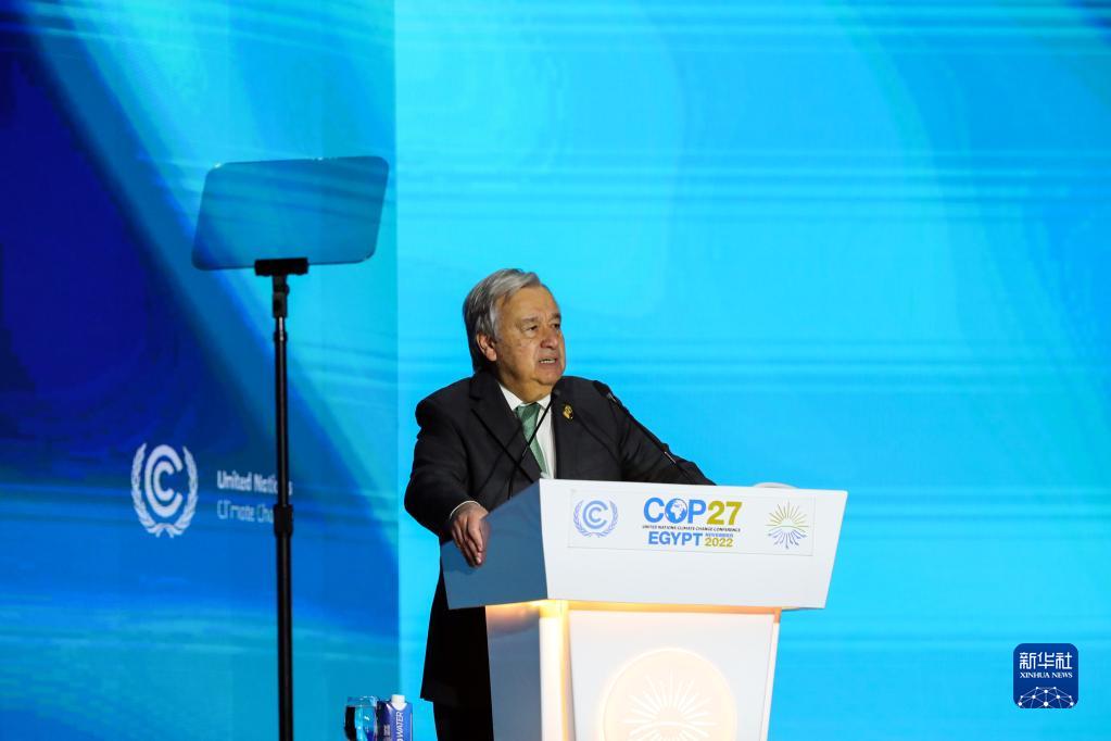 11月7日,在埃及沙姆沙伊赫,聯合國秘書長古特雷斯在聯合國氣候變化大會氣候落實峰會開幕式上講話。
