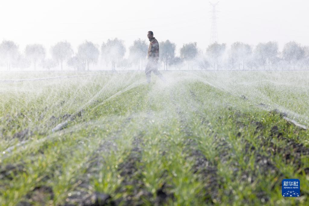 11月8日,河北省唐山市豐南區岔河鎮王各莊村農戶在田間為冬小麥澆水。