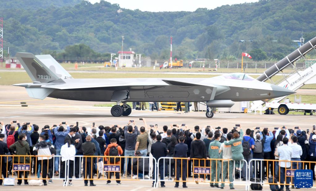 11月8日,觀眾在航展上觀看剛剛飛行歸來的殲-20。