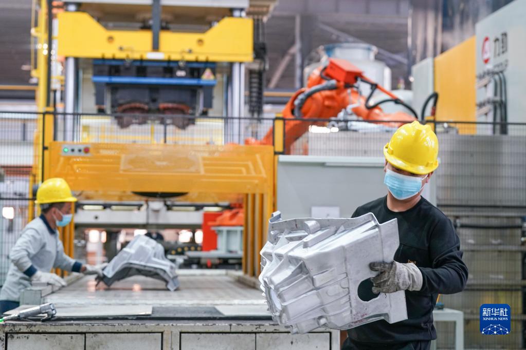 11月7日,在安徽省馬鞍山市含山縣輝晗精密機械有限公司,工人在壓鑄生產線上工作。