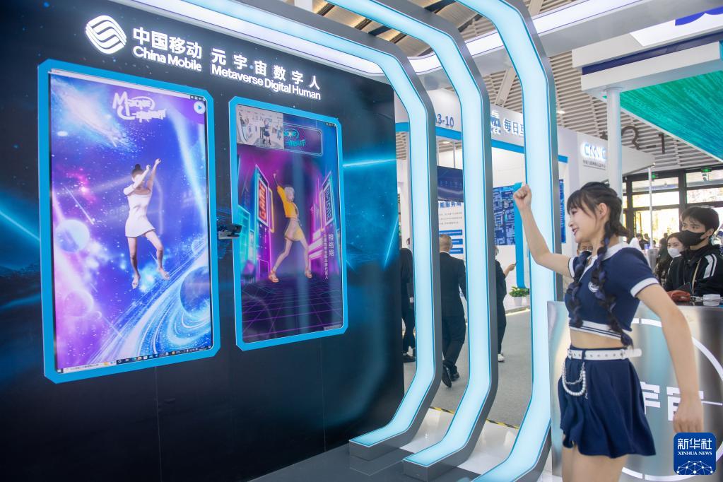 這是11月8日拍攝的中國(guó)移動(dòng)展臺(tái)展示的交互舞蹈游戲。