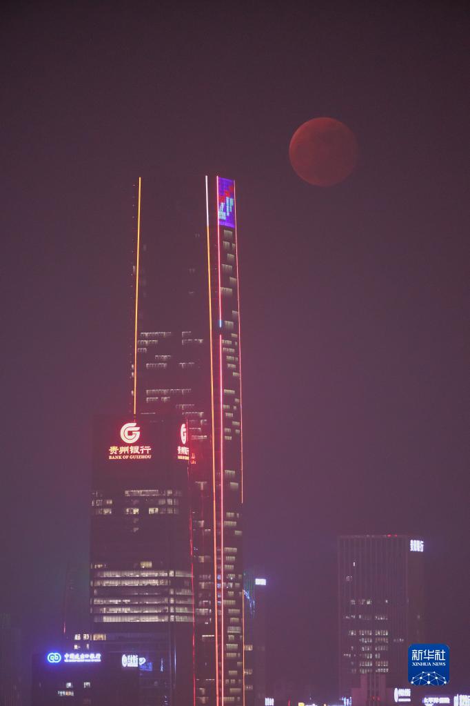 這是11月8日在貴陽市拍攝的月食(多重曝光拍攝)。