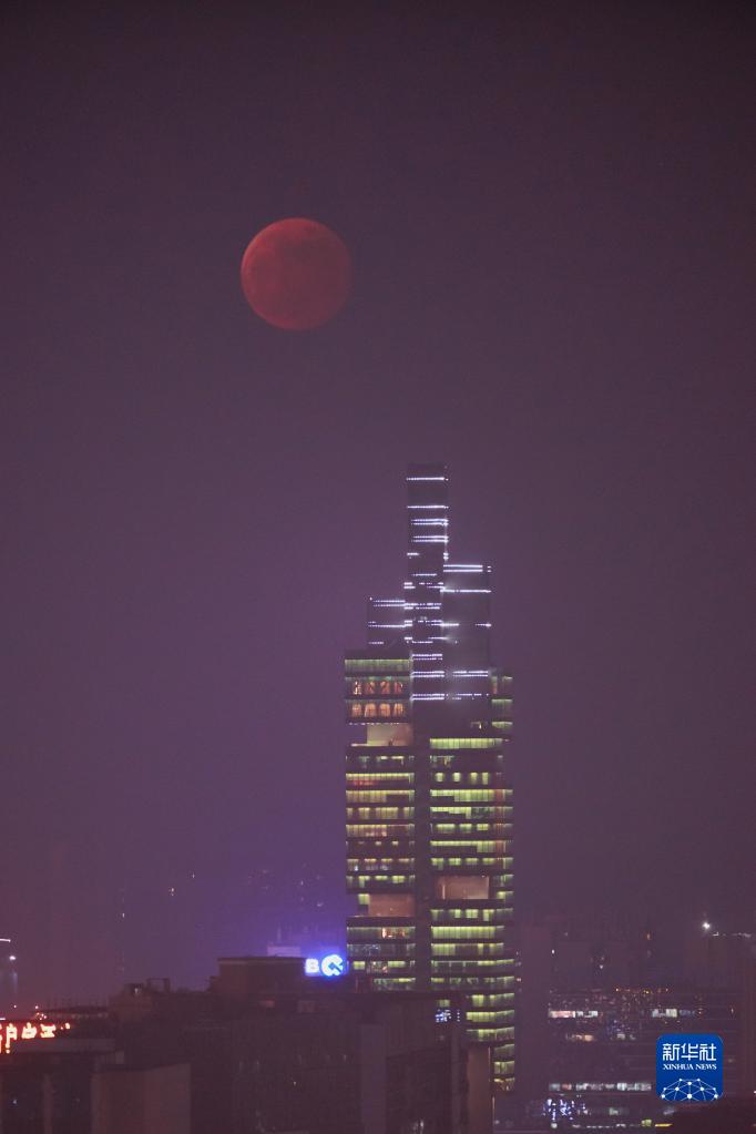 這是11月8日在貴州省貴陽市拍攝的月食景象(多重曝光拍攝)。
