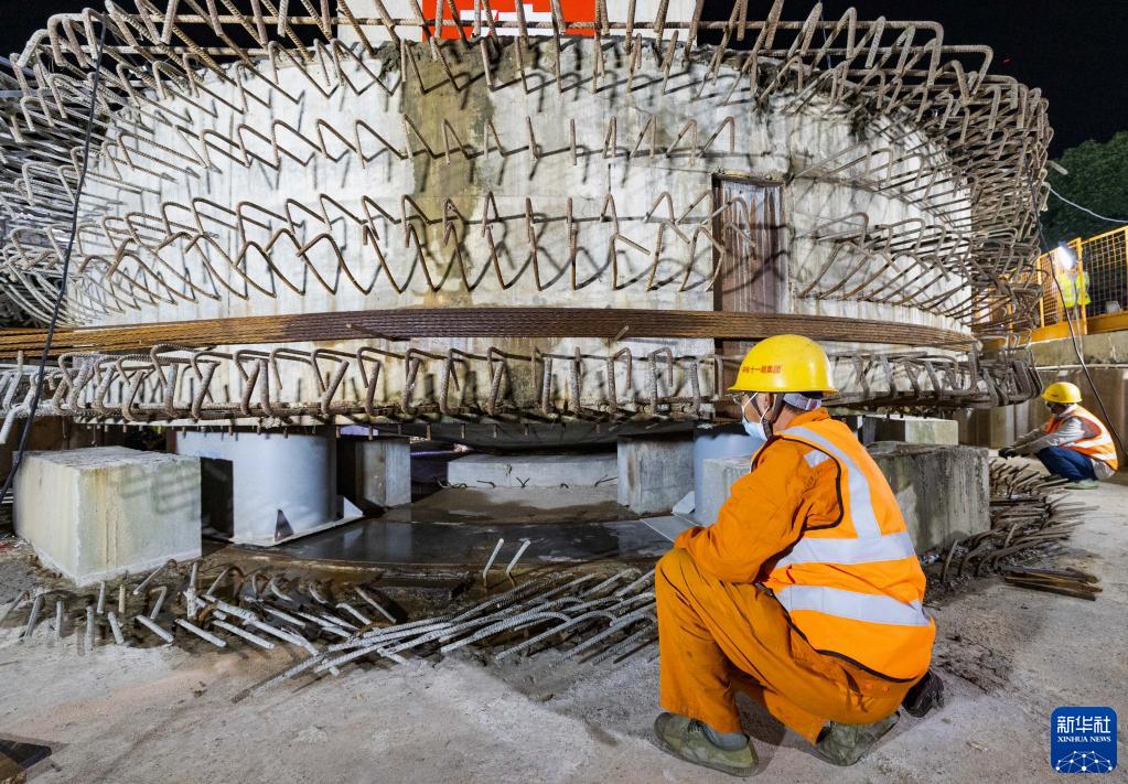 11月8日,施工人員在清遠(yuǎn)磁浮旅游專線長隆特大橋跨京廣鐵路連續(xù)梁轉(zhuǎn)體現(xiàn)場作業(yè)。