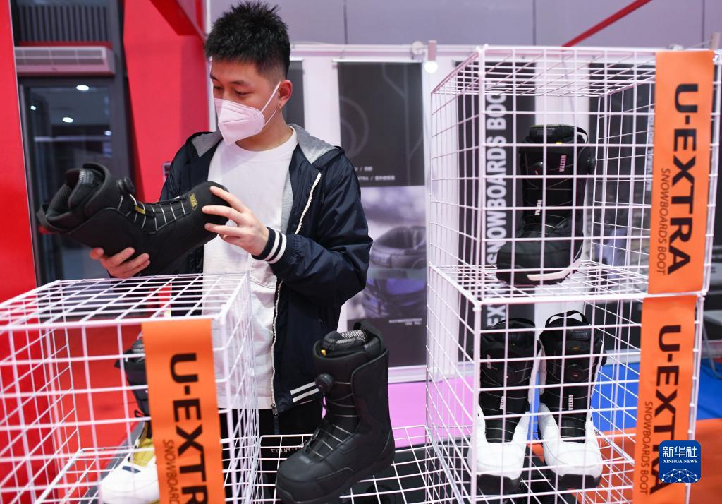 11月8日,參觀者在第五屆進(jìn)博會(huì)上了解一款滑雪鞋。