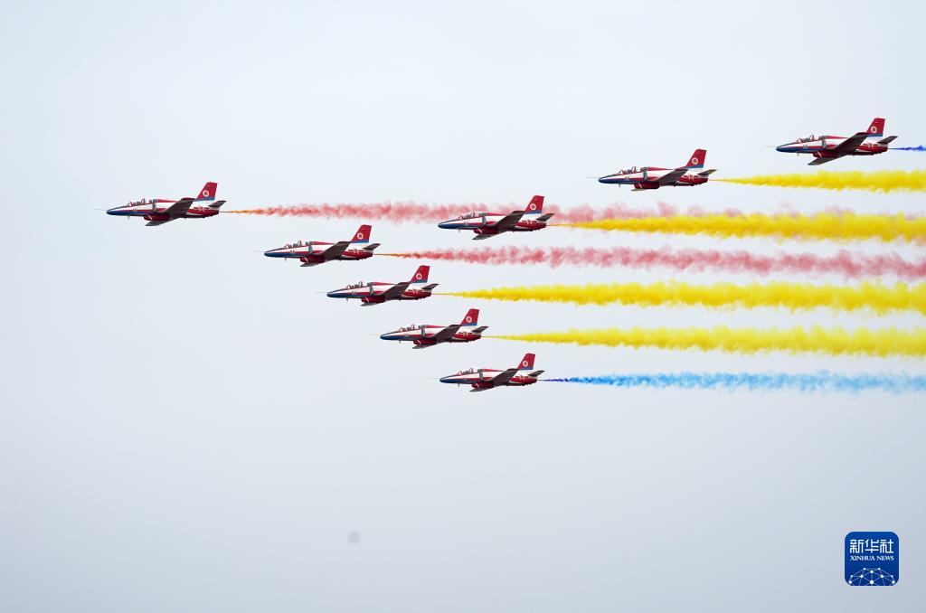 11月8日,空軍航空大學“紅鷹”飛行表演隊在第十四屆中國航展上進行飛行表演。新華社記者 張永進 攝