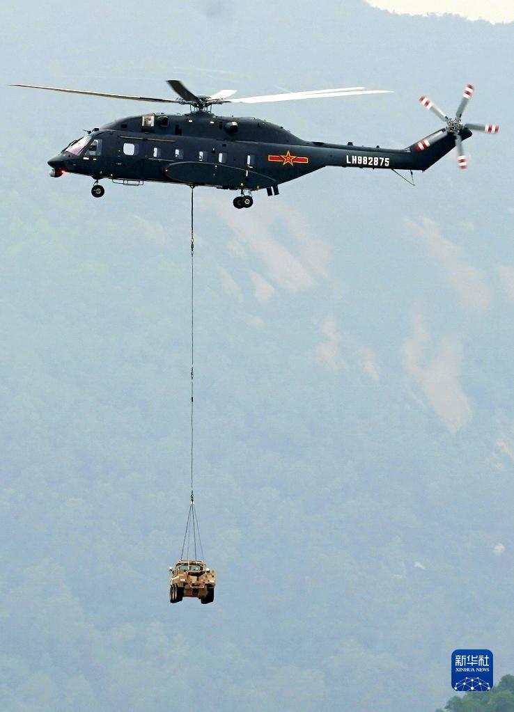 11月8日,陸軍某空中突擊旅直-8L戰機吊裝全地形車飛赴目標地域。