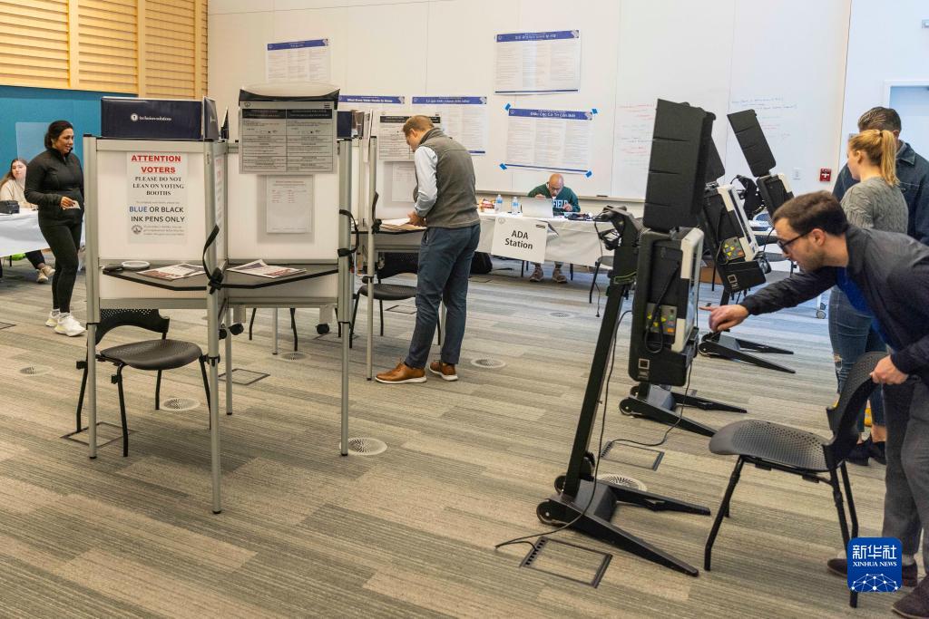 11月8日,選民在美國(guó)華盛頓的一處投票站參加中期選舉投票。