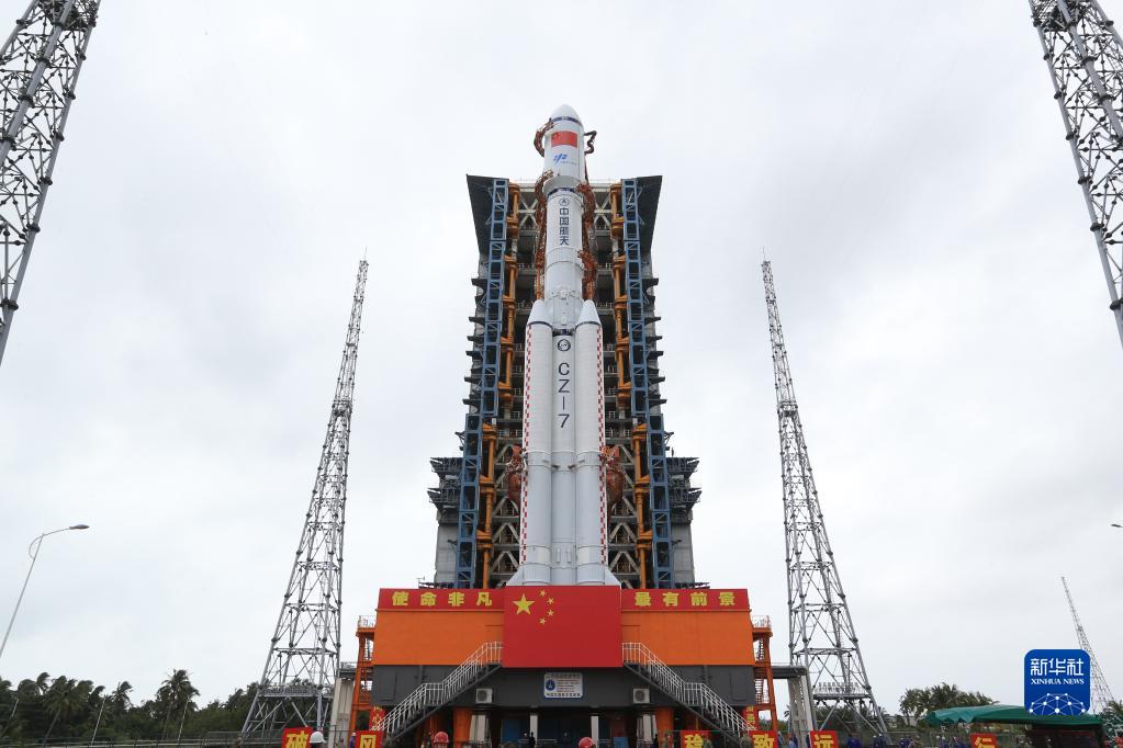 記者從中國載人航天工程辦公室獲悉,11月9日,天舟五號貨運飛船與長征七號遙六運載火箭組合體垂直轉運至發射區。