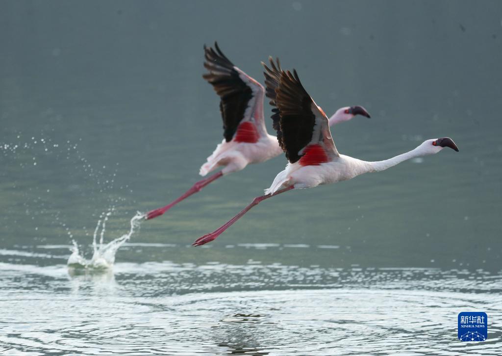 這是11月6日在肯尼亞博戈里亞湖拍攝的火烈鳥。