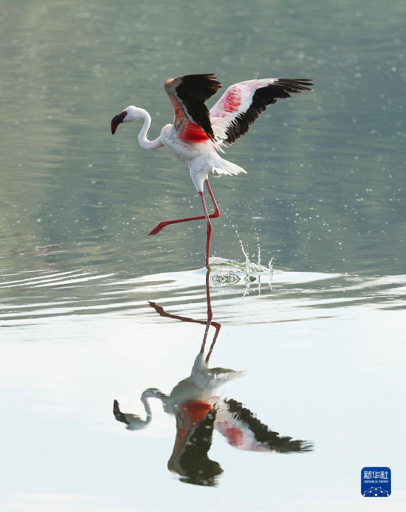 這是11月6日在肯尼亞博戈里亞湖拍攝的火烈鳥。