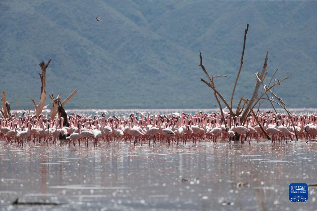 這是11月6日在肯尼亞博戈里亞湖拍攝的火烈鳥。