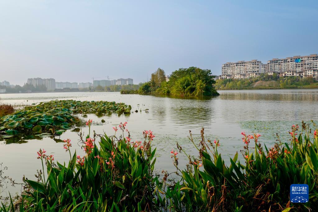 11月7日拍攝的重慶市梁平區雙桂湖國家濕地公園一景。