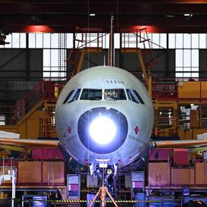 11月9日,在空客天津總裝線,其首架空客A321飛機上線開始總裝。