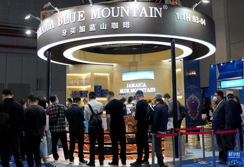 11月7日,觀眾在第五屆進博會牙買加藍山咖啡展臺參觀。