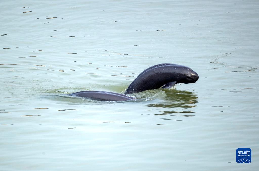 這是11月8日拍攝的長江葛洲壩下游水域中的江豚。新華社發(fā)(文振效 攝)